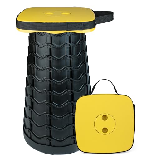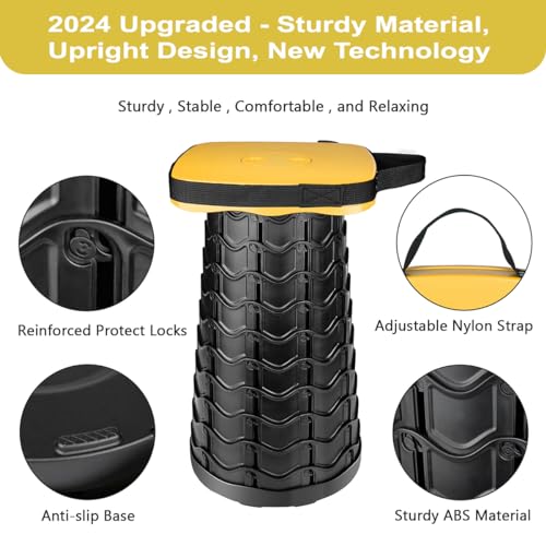 2024 Upgraded Folding Stool Collapsible Portable Chairs Sturdy Heavy Duty 550lbs Load Capacity Telescopic Stool for Camping Travel Hiking (Yellow)