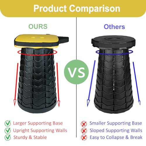 2024 Model Enhanced Sturdiness – Large and Sturdy Base with Enhanced Upright Pedestal and Enforced Clasps Locks (compared to the sloped pedestal and plastic clasps in other stools), Offering a 5-star sturdiness in portable collapsible stools that people have been waiting for