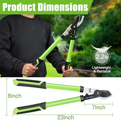 23″ SK5 Dual-Blade Loppers Cuts 2″ Dry/Wet Branches – Triangular Steel Tube & SecureLock, Heavy Duty Tree Trimmers Green/Black