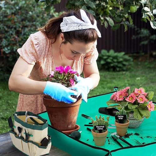 44 pcs Succulent Tool Set – 39.4″ Indoor Plant Repotting Mat and 19 Pcs Mini Gardening Hand Tools Bag, Garden Plants Transplanting Supplies for Women Gardener Gifts Outdoor, Green