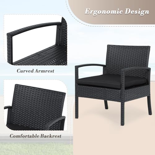 Ergonomic Conversation Set: With its ergonomic high backrest, deep seats, and comfortable armrests, the outdoor chair set promotes proper posture and body relaxation for users. Moreover, it is designed to support weights of up to 250 pounds.