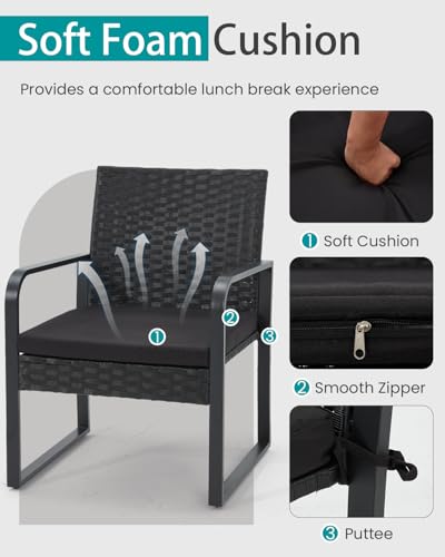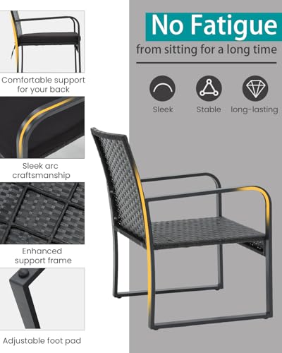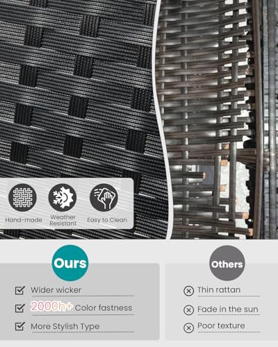 Sturdy and Durable Construction: Our outdoor patio furniture set crafted with a high-quality, powder-coated steel frame and handwoven PE rattan, this set is designed for longevity and durability. It is rust-proof, weather-resistant, and suitable for outdoor use. Each chair supports up to 250 lbs, ensuring a strong and stable seating experience