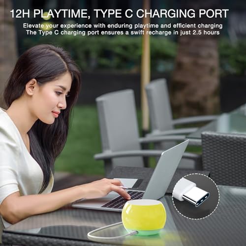 [Continuous 12-Hour Playback, Type-C Charging Port] Enjoy non-stop music for up to12 hours. Quick and convenient, the Type C charging port ensures a swift recharge in just 2.5 hours. Elevate your experience with enduring playtime and efficient charging.