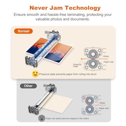 【100% Never Jam】Paper jams during laminating process can hinder efficiency and damage your documents. Discover the latest model from Bonsaii. The Bonsaii laminate machines, equipped with exclusive anti-jam technology that reliably prevents jams, safeguards your items, and ensures superior performance.