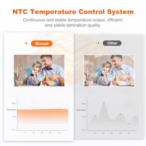 【NTC Temperature Control】 The Bonsaii A3 Laminator Machine features NTC temperature control, ensuring a stable laminating effect. With precise temperature control, you can achieve optimal laminating results.