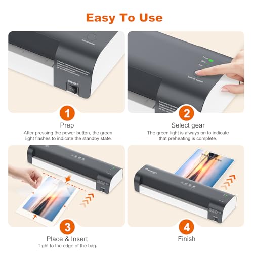 Tips: It is normal that there may be a smell in the first use, and it will gradually disappear after a few uses.(The odor is that of heated Laminating Sheets, safe and non-toxic)