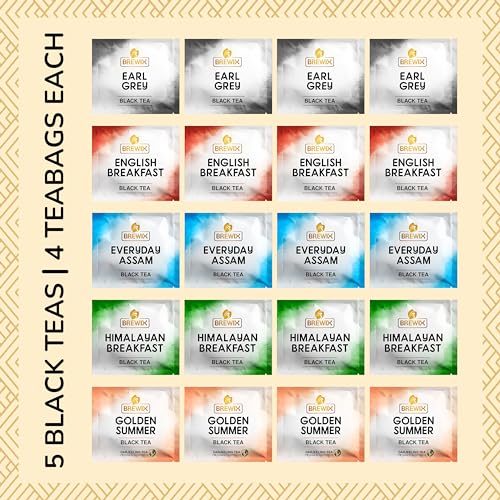 BREWIX Premium Assorted Black Tea Sampler Gift Box with 5 Flavors (20 Pyramid Indivdidually Wrapperd Tea Bags) | Tea Gift Set & Variety Pack | Gifts for Women & Men, Tea Set
