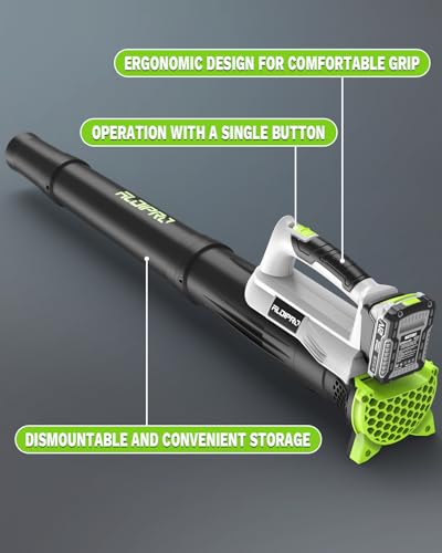 [Long-Lasting and Fast Charging] Powered by a 2.0Ah high-density lithium battery with Smart Eco Mode, this blower cordless delivers enough power to clean your entire yard on a single charge. Our next-generation fast-charging technology recharges up to 40% faster than traditional models-it’s fully charged in your lunch break. Battery Management System (BMS) actively guards against overcharging/overheating/short circuits while maintaining 80% capacity after 800 cycles