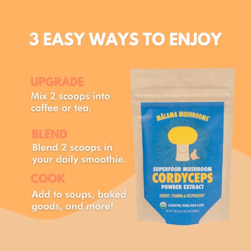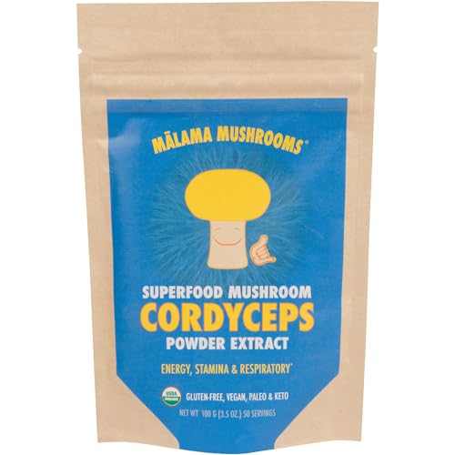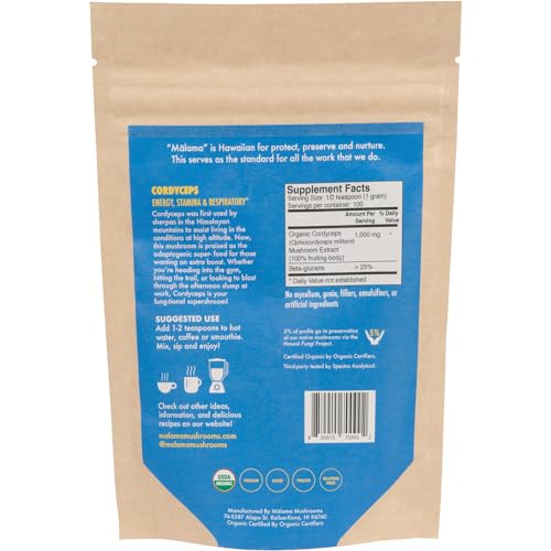 Cordyceps Extract Powder by Malama, Organic Fruiting Body Cordyceps Mushroom Powder, Superfood Adaptogenic, Supports Energy, Endurance & Mood, 100 Servings