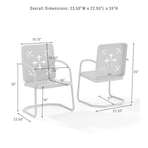 The Azalea 3-Piece Chair Set brings a touch of retro charm and vibrant color to your front porch. Designed to withstand the elements, this outdoor set features durable, powder-coated steel construction. The patio chairs combine timeless decorative cutouts with the subtle recline of a cantilever base, while the side table offers a sturdy surface to complement the chairs. Stylish and versatile, this set turns your outdoor space into a cozy spot for everyday moments.
