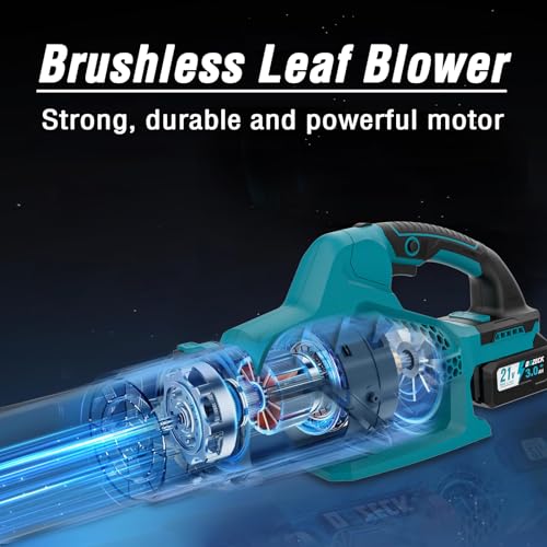 Double battery life and strong power “Experience uninterrupted power with our cordless leaf blower! Equipped with dual 21V rechargeable batteries and fast charger, enjoy 60 mins runtime – 30% longer than single-battery models. Perfect for large yards and intense lawn care tasks