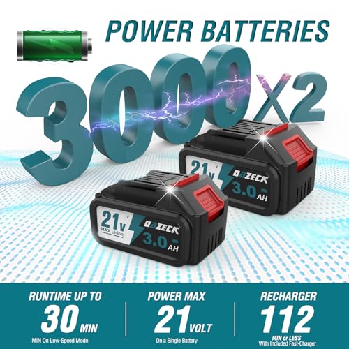 DAZECKLeaf Blower, Electric Cordless Leaf Blower, 21 Volt Electric Leaf Blower with 2 Batteries and Charger, 6 Speed Modes, Lightweight Leaf Blower for Leaf Blowing, Lawn Care and Dusting