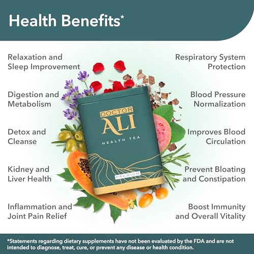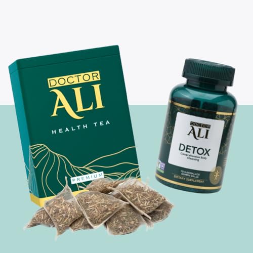 DOCTOR ALI Health Tea + Detox Gummies for Comprehensive Body Cleanse – Organic supplement set for Detox Cleanse, Digestion, Sleep Improvement – Organic Ingredients, Gluten Free