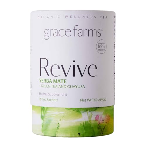 Grace Farms REVIVE Wellness Organic Tea Blend (16 Pyramid Sachets) | Yerba Mate, Green Tea, & Adaptogens | Natural Energy Coffee Replacement | Fairtrade & Kosher | Gives Back 100% of Profits