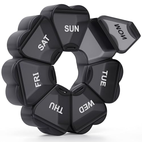 Large Weekly Pill Organizer, Pill Box 7 Day, KAPENS Daily Vitamin Case Large Capacity Compartments, Pill Containers for Fish Oil Medicine Supplements, Black