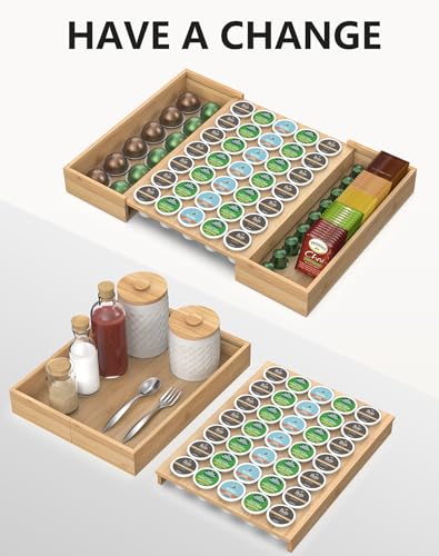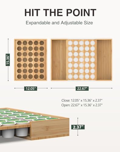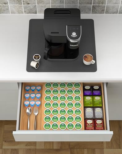 Larger Expandable Bamboo Coffee Pod Holder for Counter Drawer – Compatible with K-Cup Pods – Tea Bags Storage (Natural)
