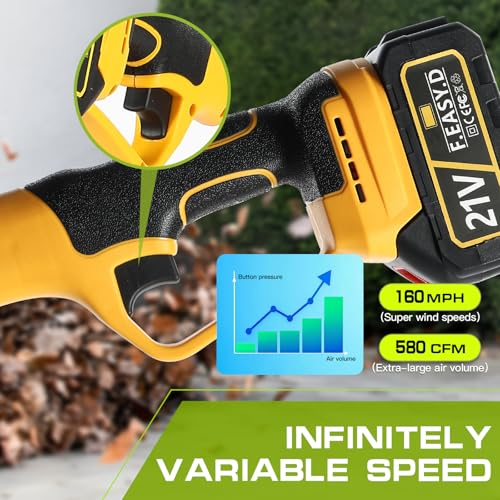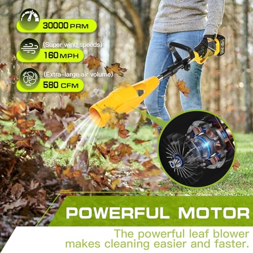 Leaf Blower Cordless, Electric Cordless Leaf Blower w/2 X 3.0Ah Batteries Charger, Infinitely Variable Speed, 580CFM/160MPH Lightweight Leaf Blowers for Patio Cleaning, Lawn Care, Yard, Garage