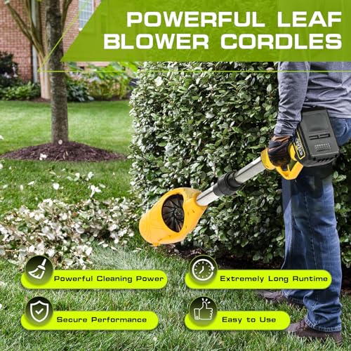 【Excellent Dust Removal Effect】OPULIV leaf blower cordless solves the limitations and bulkiness of traditional leaf blowers with rope. With a body weight of 1.5 lb and a powerful airflow of up to 580 CFM and a high-velocity wind force of 160 MPH, it can quickly blow away light objects such as leaves and dust, making it suitable for use in courtyards, parks, streets, and more