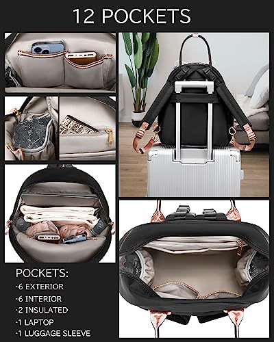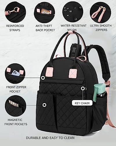 LORADI Medium Diaper Bag Backpack with Storller Clips, Water-Resistant Cute Diaper Tote with Anti-Theft Pocket, Black