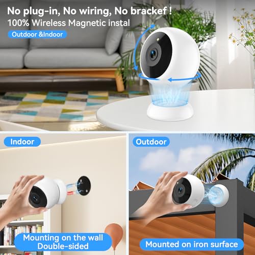 Magnetic Security Camera Wireless – 2K HD Video, AI Motion Detection, Battery Powered, 360°, 2-Way Audio,IR Color Night Vision, Waterproof, Outdoor & Indoor Surveillance