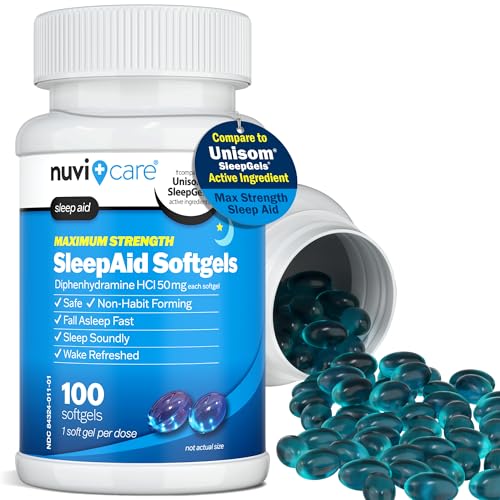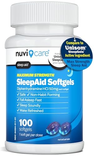 MAXIMUM STRENGTH SLEEP SUPPORT – When your mind won’t shut off and the night feels endless, Nuvicare Sleep Aid Softgels are here to help. Our extra-strength Diphenhydramine sleep aid pills work fast to quiet restless thoughts and calm the body, helping you fall asleep faster.