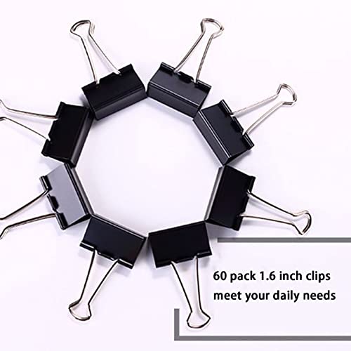 Medium Binder Clips 1.6 Inch (60 Pack), Large Binder Clips Medium Paper Clamps for Office and Home Supplies, Black
