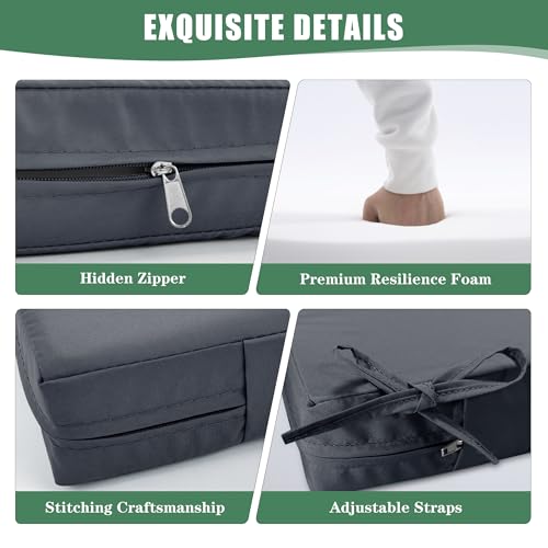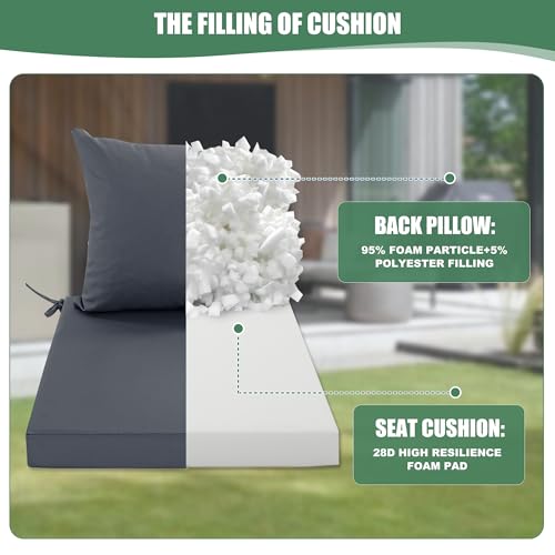 Waterproof & Fade-resistant: Crafted from high-quality polyester oxford fabric with a dual waterproof treatment, our outdoor cushions offer outstanding water resistance, allowing you to relax worry-free from rain showers or accidental spills. And these patio cushions also offer a certain level of fade resistance, helping them to retain their vibrant colors for longer