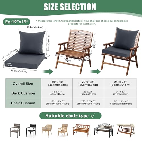Patio Chair Cushions Set of 4, Water Resistant Backrest Pillow and Seat Cushion Set for Outdoor Furniture, Sectional Sofa Cushion Replacments, 24 x 24 Inch, Dark Grey