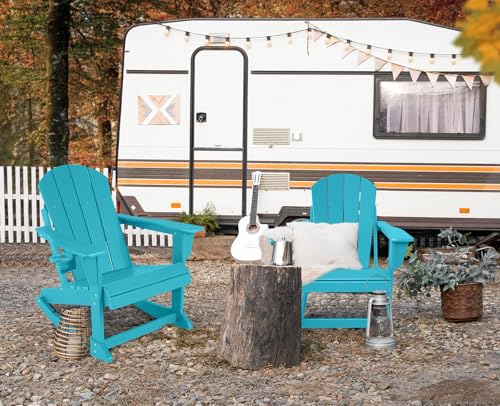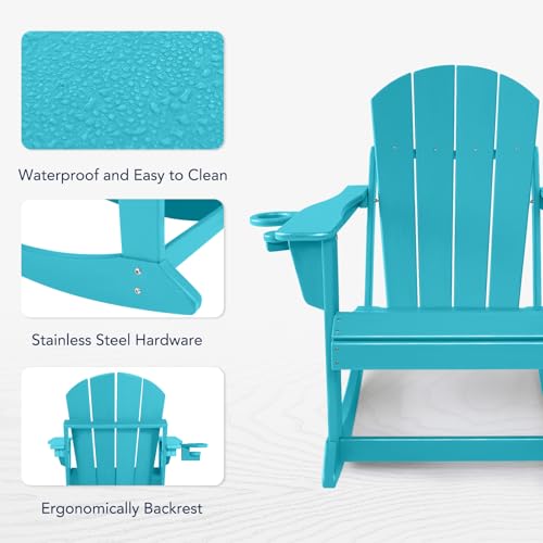 Plastic Adirondack Chair – Rocking Adirondack Chairs with Cup Holder, Weather Resistant Seating for Patio, Porch, Deck, Pool, Garden, Backyard (Seat Width 20″, Turquoise)