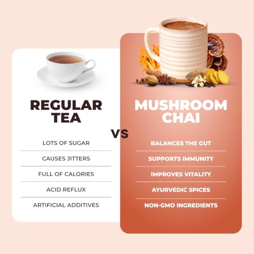 HEALTHIEST CHAI EVER: Powered by 6 adaptogenic mushrooms and Ayurvedic Spices, RYZE Mushroom Chai gives you balanced energy, better focus, and immune support and even promote a healthy gut. If you like tea, you’ll LOVE this Chai
