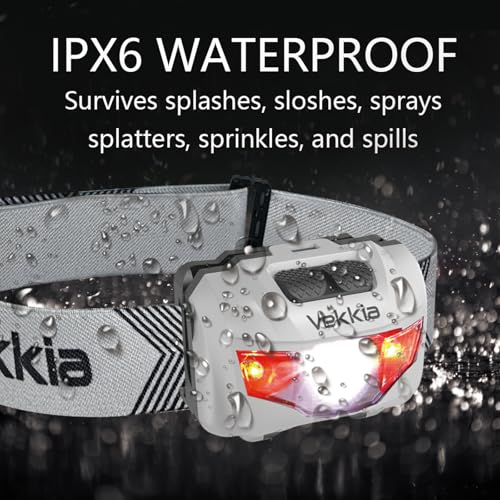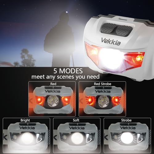 Vekkia Ultra Bright LED Headlamp-5 Lighting Modes,White & Red LEDs Head Lamp, Camping Accessories Gear. IPX6 Waterproof Headlight for Running,Cycling,Fishing,Hiking,Repairing. Batteries Included